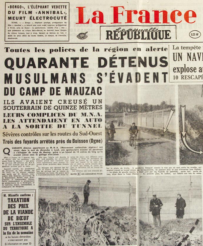 Deux ans à peine avant la sortie du film « La Grande Évasion », du réalisateur américain John Sturges, la fuite massive de 39 détenus du centre pénitentiaire de Mauzac défraie la chronique. Tous les fugitifs sont des condamnés politiques algériens, d’obédience MNA (Mouvement national algérien). Retour sur une incroyable évasion…