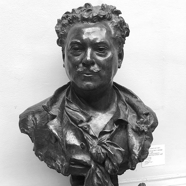 - Jean-Sully Mounet, dit Mounet-Sully (1841-1916). Né à Bergerac, Dordogne. Acteur, il devient sociétaire de la Comédie Française en 1872, sociétaire en 1874 et doyen en 1895. Servi par une stature imposante, des gestes harmonieux et une belle voix, il va s’imposer comme un des tragédiens les plus renommés de son temps. Il pense que l’acteur doit abandonner sa personnalité en montant sur scène, pour se laisser entièrement absorber par son rôle.